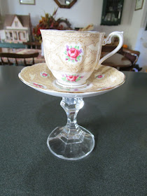 ReplyDeleteYou have a very kind and helpful son :) What fun stuff going on with saucers! I really like the saucer that you used under the cup, with all the flowers (haha - don't they all have lotsa flowers?) And have you ever had this problem: you want a cup of tea, but the nibbles/snack you want to go with it is too big for the saucer? But you don't want to carry a second plate? Well, your saucer on a candlestick is perfect! It can sit on a salad plate with all the snack food, raising your cup above it all :)