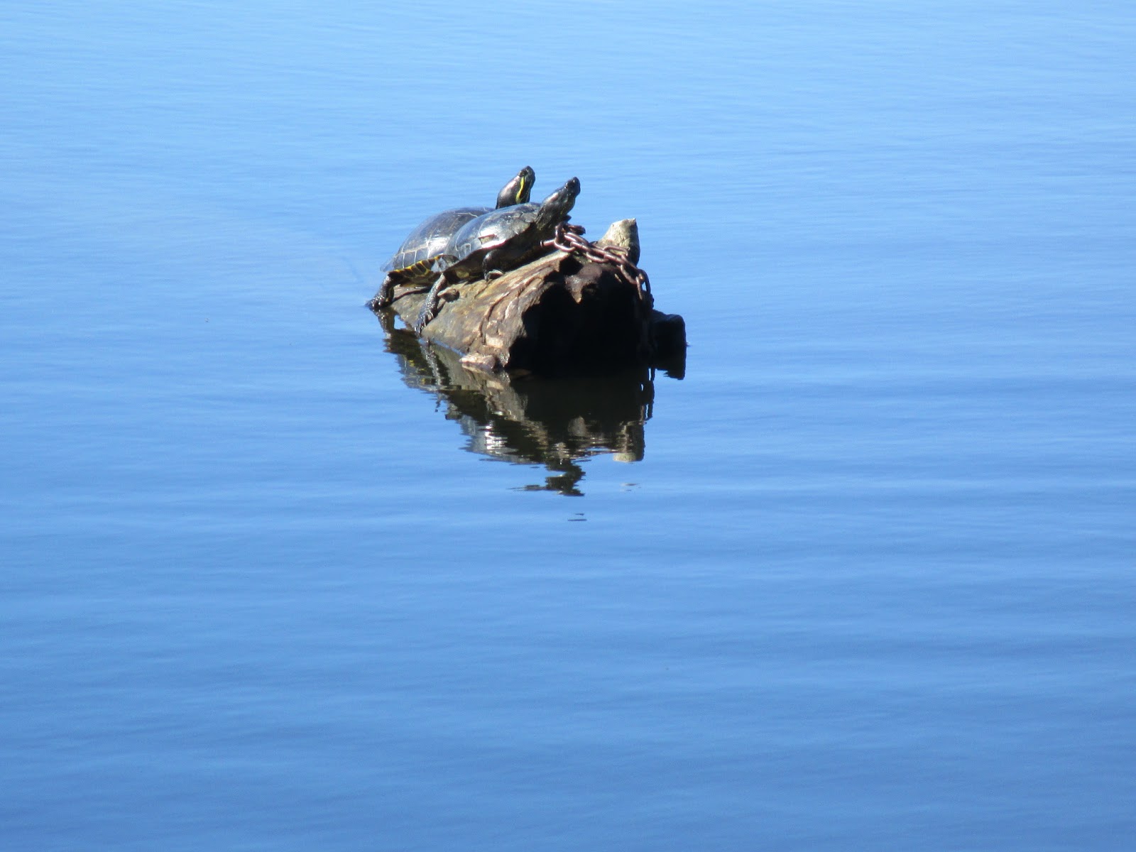 Did you see the turtles on a log in the picture above? If not below is a closer view. We watched another turtle s l o w l y make his way onto a log one millimeter at a time. We didn't stick around long enough to see him actually get to the top.